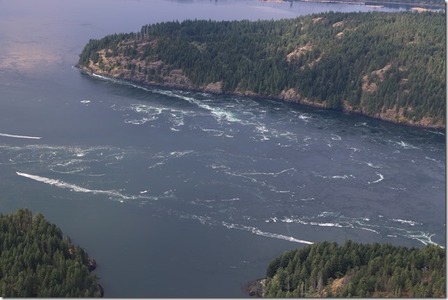 氷河が作った複雑な海峡の上を飛行。海なのに川のような急流。汐の満ち