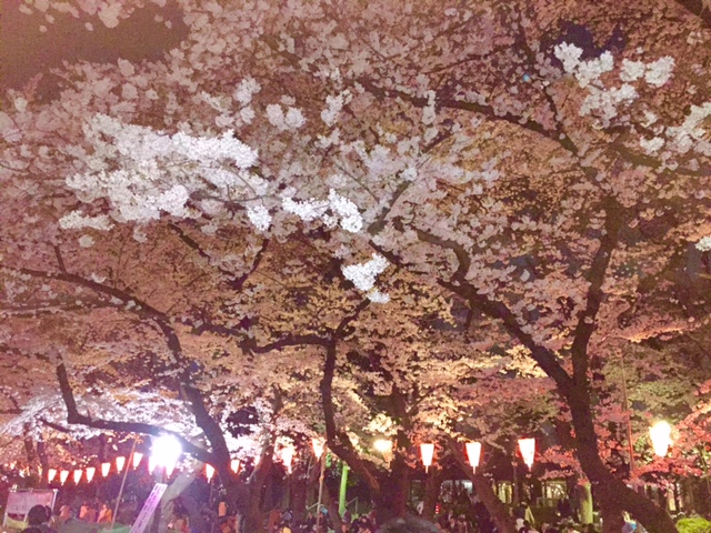 『F国際ビジネスマンのカメラ・ウオッチ(95)』3/30日、上野公園はサクラ一色。夕刻、ライトアップ開始。背広姿の宴会が一斉にスタート➂