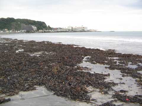 一、二月はワカメ、四、五月はヒジキなどの海藻が、風の吹いた後は海岸の白砂が真っ黒くなるほどたくさん打ち上げられている。