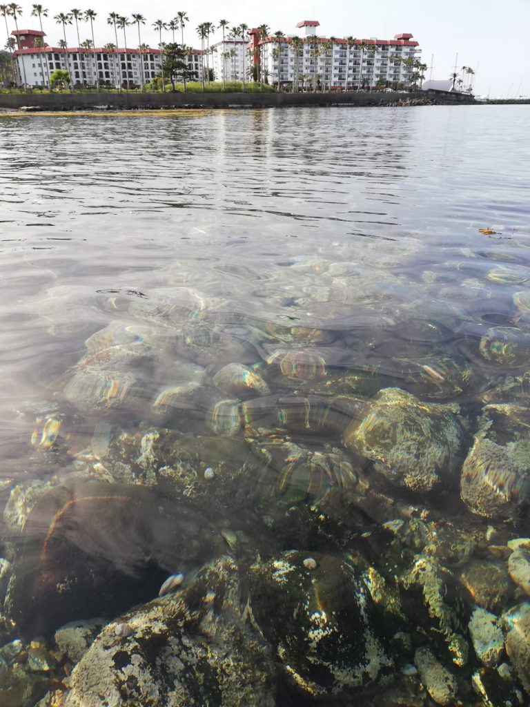 24日午前5時半、川越名人とスタート。快晴、無風、ブルースカーイ、富士山がかすんで見える和賀江島横、逗子マリーナの沖にはにはヒジキがいっぱい繁茂している。・