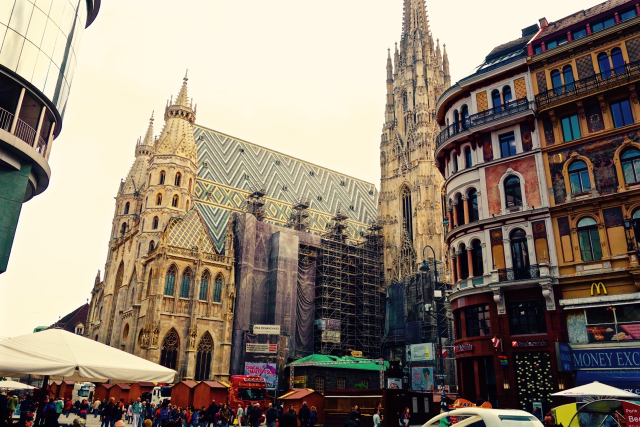 オーストリア公ルドルフ4世の命によって建造されたこの聖堂は、1359年に65年を掛けて南塔が完成、107Mの高さを持ち、ドイツのウルム大聖堂(161M)、ケルン大聖堂(157M)に次いで世界3番目の高さである。