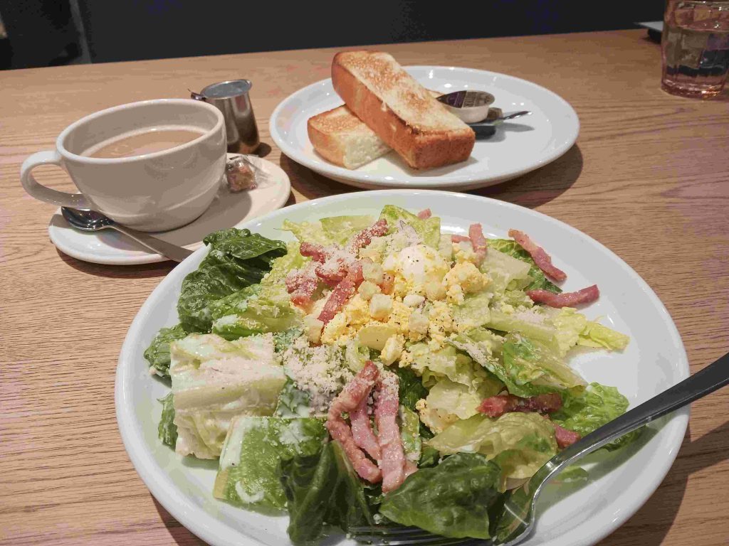 ↓シーザーサラダ、葉山パン、なぎさ橋珈琲アメリカンでブレックファースト、あとは、テレワーク/ライティング
