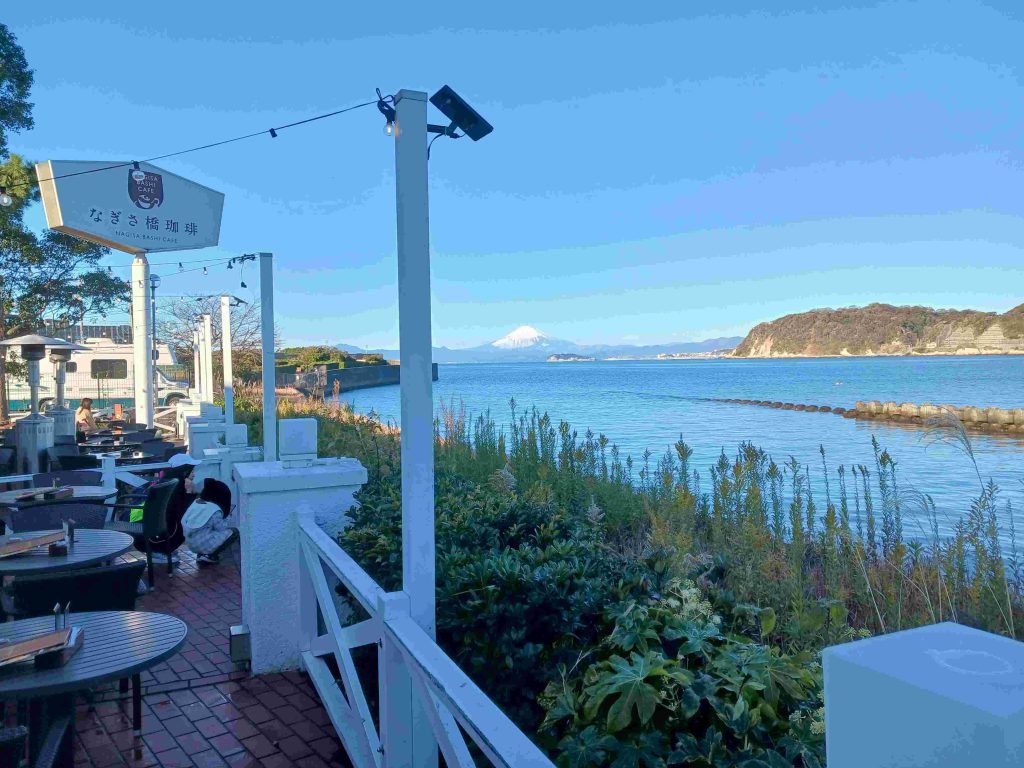 逗子なぎさ橋珈琲店テラス・富士山を眺めながら講義「日本軍事史」